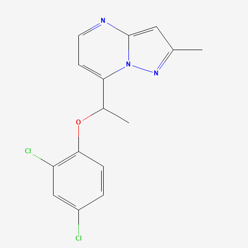 - Synonyms:7-[1-(2,4-dichlorophenoxy)ethyl]-2-methylpyrazolo[1,5-a]pyrimidine;477858-80-3;Bionet2_001249;DTXSID101166058;HMS1367I17;AKOS005079068;11R-0033