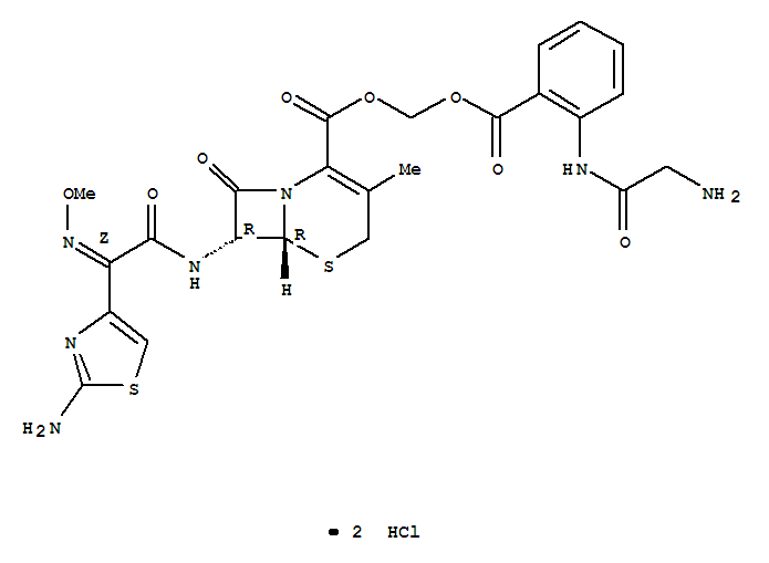 - Synonyms:7beta-(2-(2-aminothiazol-4-yl)-2-methoxyiminoacetamido)-3-methyl-3-cephem-4-carboxylic acid glycylaminobenzoyloxymethyl ester