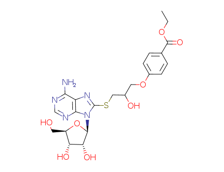 - Synonyms:8-<<2-hydroxy-3-(p-ethoxycarbonyl)phenoxypropyl>thio> adenosine