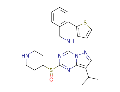 - Synonyms:8-isopropyl-2-(piperidin-4-ylsulfinyl)-N-(2-(thiophen-2-yl)benzyl)pyrazolo[1,5-a][1,3,5]triazin-4-amine