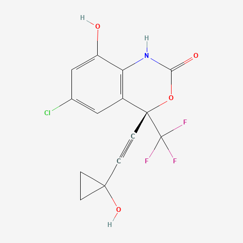 - Synonyms:8,14-Dihydroxyefavirenz;252343-27-4;UNII-CUY87N1BWE;CUY87N1BWE;(S)-8,14-Dihydroxy Efavirenz;(4S)-6-Chloro-8-hydroxy-4-(2-(1-hydroxycyclopropyl)ethynyl)-4-(trifluoromethyl)-1H-3,1-benzoxazin-2-one;2H-3,1-Benzoxazin-2-one, 6-chloro-1,4-dihydro-8-hydroxy-4-((1-hydroxycyclopropyl)ethynyl)-4-(trifluoromethyl)-, (4S)-;(4S)-6-chloro-8-hydroxy-4-[2-(1-hydroxycyclopropyl)ethynyl]-4-(trifluoromethyl)-1H-3,1-benzoxazin-2-one;8,14-OH Efavirenz;8,14-dihydroxy EFV;8,14-dihydroxy Efavirenz;CHEMBL3526538;8,14-OH EFV;WILFXLMJFSKQRP-ZDUSSCGKSA-N;NS00116694;Q27275818