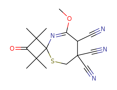 - 104374-20-1/9-methoxy-1,1,3,3-tetramethyl-2-oxo-5-thia-10-azaspiro[3.6]dec-9-ene-7,7,8-tricarbonitrile