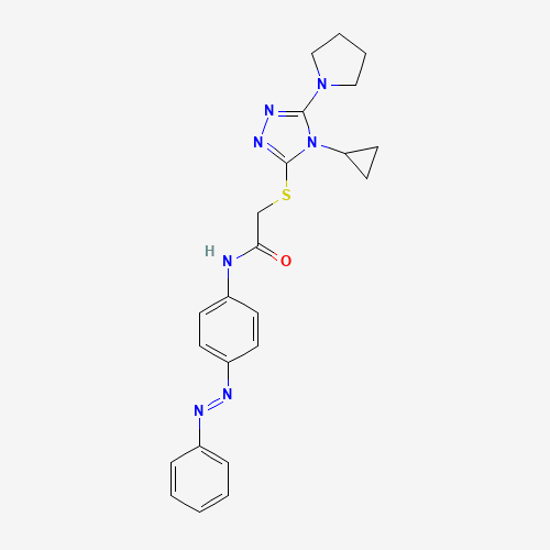 - Synonyms:DTXSID001039721;AKOS002562366;937974-41-9;Acetamide, 2-[[4-cyclopropyl-5-(1-pyrrolidinyl)-4H-1,2,4-triazol-3-yl]thio]-N-[4-(2-phenyldiazenyl)phenyl]-