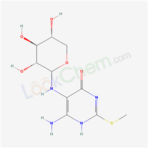 - Synonyms:n-[6-amino-2-(methylsulfanyl)-4-oxo-1,4-dihydropyrimidin-5-yl]-d-xylopyranosylamine;6-Amino-2-methylsulfanyl-5-((3R,4S,5R)-3,4,5-trihydroxy-tetrahydro-pyran-2-ylamino)-3H-pyrimidin-4-one;