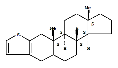 - Synonyms:1H-Cyclopenta[7,8]phenanthro[3,2-b]thiophene,androst-2-eno[2,3-b]thiophene deriv.;1H-Cyclopenta[7,8]phenanthro[3,2-b]thiophene,2,3,3a,3b,4,5,5a,6,10,10a,10b,11,12,12a-tetradecahydro-10a,12a-dimethyl-,[3aS-(3aa,3bb,10ab,10ba,12ab)]-; [3aS-(3aa,3bb,10ab,10ba,12ab)]-2,3,3a,3b,4,5,5a,6,10,10a,10b,11,12,12a-Tetradecahydro-10a,12a-dimethyl-1H-cyclopenta[7,8]phenanthro[3,2-b]thiophene
