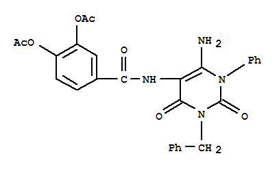 - Synonyms:Benzamide, 3,4-bis(acetyloxy)-N-[6-amino-1,2,3,4-tetrahydro-2,4-dioxo-1-phenyl-3-(phenylmethyl)-5-pyrimidinyl]-