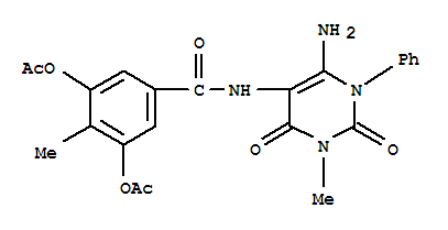 - Synonyms:Benzamide, 3,5-bis(acetyloxy)-N-(6-amino-1,2,3,4-tetrahydro-3-methyl-2,4-dioxo-1-phenyl-5-pyrimidinyl)-4-methyl-