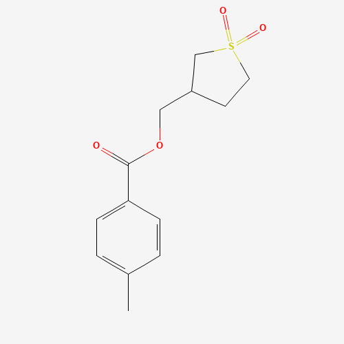 - Synonyms:321971-82-8;Benzoic acid, 4-methyl-, (tetrahydro-1,1-dioxido-3-thienyl)methyl ester;Oprea1_418360;(1,1-dioxidotetrahydrothiophen-3-yl)methyl 4-methylbenzoate;DTXSID401198294;STL454646;AKOS000269907;AKOS016039767;(Tetrahydro-1,1-dioxido-3-thienyl)methyl 4-methylbenzoate