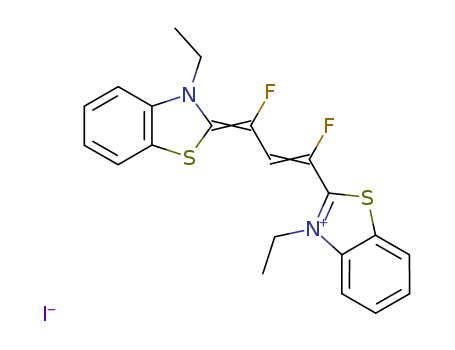 - Synonyms:3-Ethyl-2-[3-(3-ethyl-2-benzothiazolinylidene)-1,3-difluoropropenyl]benzothiazoliumiodide (7CI); Benzothiazolium,3-ethyl-2-[3-(3-ethyl-2(3H)-benzothiazolylidene)-1,3-difluoro-1-propenyl]-,iodide (9CI); Benzothiazolium,3-ethyl-2-[3-(3-ethyl-2-benzothiazolinylidene)-1,3-difluoropropenyl]-, iodide(8CI)
