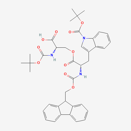 - Synonyms:944283-24-3;DTXSID301100836;AKOS030213094;(Tert-Butoxy)Carbonyl Ser((9H-Fluoren-9-yl)MethOxy]Carbonyl Trp(Boc))-OH;1-[(1,1-Dimethylethoxy)carbonyl]-N-[(9H-fluoren-9-ylmethoxy)carbonyl]-L-tryptophan 2-carboxy-2-[[(1,1-dimethylethoxy)carbonyl]amino]ethyl ester;L-Tryptophan, 1-[(1,1-dimethylethoxy)carbonyl]-N-[(9H-fluoren-9-ylmethoxy)carbonyl]-, 2-carboxy-2-[[(1,1-dimethylethoxy)carbonyl]amino]ethyl ester;L-Tryptophan,1-[(1,1-dimethylethoxy)carbonyl]-N-[(9H-fluoren-9-ylmethoxy)carbonyl]-,2-carboxy-2-[[(1,1-dimethylethoxy)carbonyl]amino]ethylester