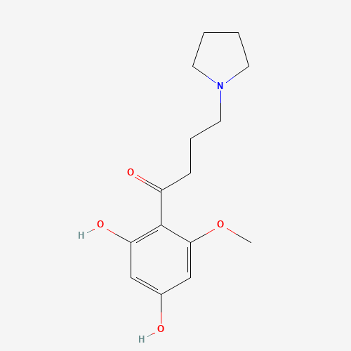- Synonyms:KN4B2XH62A;BUFLOMEDIL HYDROCHLORIDE IMPURITY C [EP IMPURITY];123518-34-3;1-(2,4-Dihydroxy-6-methoxyphenyl)-4-(1-pyrrolidinyl)-1-butanone;1-(2,4-dihydroxy-6-methoxyphenyl)-4-(pyrrolidin-1-yl)butan-1-one;1-Butanone, 1-(2,4-dihydroxy-6-methoxyphenyl)-4-(1-pyrrolidinyl)-
