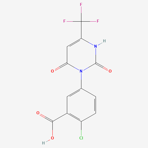 - Synonyms:C-4242 acid;SCHEMBL9274567;DTXSID60905007;130683-59-9;2-Chloro-5-[2,6-dioxo-4-(trifluoromethyl)-3,6-dihydro-1(2H)-pyrimidinyl]benzoic acid;2-chloro-5-[3,6-dihydro-4-trifluoromethyl-2,6-dioxo-1(2H)pyrimidinyl]benzoic acid