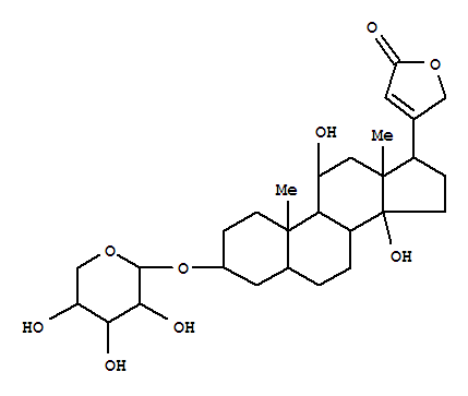 Card-20(22)-enolide,3-(a-L-arabinopyranosyloxy)-11,14-dihydroxy-,(3b,5b,11a)- (9CI)(24660-14-8)