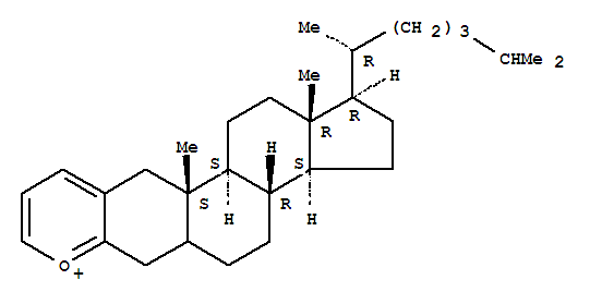 - Synonyms:1H-Cyclopenta[7,8]phenanthro[2,3-b]pyrylium,cholest-2-eno[3,2-b]pyrylium deriv.; 1H-Cyclopenta[7,8]phenanthro[2,3-b]pyrylium,1-(1,5-dimethylhexyl)-2,3,3a,3b,4,5,5a,6,11,11a,11b,12,13,13a-tetradecahydro-11a,13a-dimethyl-,[1R-[1a(R*),3ab,3ba,11aa,11bb,13aa]]-; [1R-[1a(R*),3ab,3ba,11aa,11bb,13aa]]-1-(1,5-Dimethylhexyl)-2,3,3a,3b,4,5,5a,6,11,11a,11b,12,13,13a-tetradecahydro-11a,13a-dimethyl-1H-cyclopenta[7,8]phenanthro[2,3-b]pyrylium