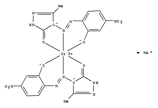 - Synonyms:Chromate(1-),bis[2,4-dihydro-4-[(2-hydroxy-4-nitrophenyl)azo]-5-methyl-3H-pyrazol-3-onato(2-)]-,sodium; Chromate(1-), bis[2,4-dihydro-4-[[2-(hydroxy-kO)-4-nitrophenyl]azo-kN1]-5-methyl-3H-pyrazol-3-onato(2-)-kO3]-, sodium (9CI);3H-Pyrazol-3-one, 2,4-dihydro-4-[(2-hydroxy-4-nitrophenyl)azo]-5-methyl-,chromium complex