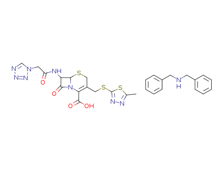 - Synonyms:5-Thia-1-azabicyclo(4.2.0)oct-2-ene-2-carboxylic acid,3-(((5-methyl-1,3,4-thiadiazol-2-yl)thio)methyl)-8-oxo-7-((1H-tetrazol-1-ylacetyl)amino)-,(6R-trans)-,compd. with N-(phenylmethyl)benzenemethanamine (1:1);UNII-RL6HM78IGY;Cefazolin dibenzylamine salt;Cefazolin dibenzylamine;