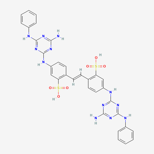 - Synonyms:52Z7POI02A;Fluorescent brightener 49 free acid, (E)-;UNII-52Z7POI02A;C.i. fluorescent brightener 49 free acid, (E)-;C.i. fluorescent brightener 49 free acid, trans-;736095-36-6;Benzenesulfonic acid, 2,2'-(1,2-ethenediyl)bis(5-((4-amino-6-(phenylamino)-1,3,5-triazin-2-yl)amino)-, (E)-;SCHEMBL15783862;(E)-fluorescent brightener 49 free acid;Q27261030
