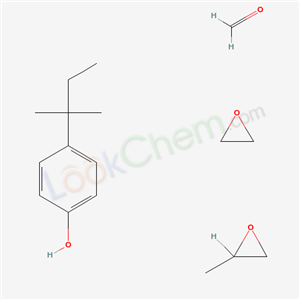 - Synonyms:Formaldehyde,polymer with p-tert-amylphenol,methyloxirane and oxirane;Formaldehyde p-tert-amylphenol propylene oxide ethylene oxide polymer;Formaldehyde,polymer with 4-(1,1-dimethylpropyl)phenol,2-methyloxirane and oxirane;Formaldehyde,polymer with 4-(1,1-dimethylpropyl)phenol,methyloxirane and oxirane;p-tert-Amylphenol,formaldehyde,ethylene oxide,propylene oxide polymer;