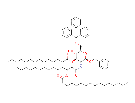 Hexadecanoic acid (R)-1-[((2R,3R,4R,5S,6R)-2-benzyloxy-5-hydroxy-4-tetradecanoyloxy-6-trityloxymethyl-tetrahydro-pyran-3-ylcarbamoyl)-methyl]-dodecyl ester(112166-24-2)