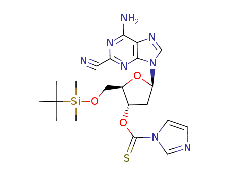 Imidazole-1-carbothioic acid O-[(2R,3S,5R)-5-(6-amino-2-cyano-purin-9-yl)-2-(tert-butyl-dimethyl-silanyloxymethyl)-tetrahydro-furan-3-yl] ester(122970-24-5)