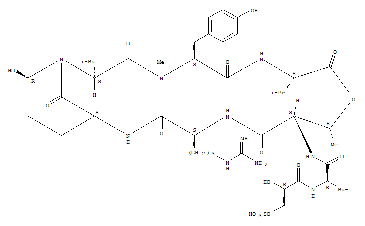 - Name: L-Valine,(2R)-2-hydroxy-3-(sulfooxy)propanoyl-D-leucyl-L-threonyl-L-arginyl-(aS,3S,6R)-3-amino-6-hydroxy-a-(2-methylpropyl)-2-oxo-1-piperidineacetyl-N-methyl-L-tyrosyl-,(7®3)-lactone (9CI)
