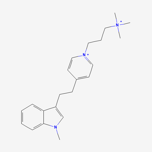 - Synonyms:Methindethyrium ion;Methindethyrium cation;UNII-5ZB71W73QJ;5ZB71W73QJ;Pyridinium, 4-(2-(1-methyl-1H-indol-3-yl)ethyl)-1-(3-(trimethylammonio)propyl)-;793603-48-2;Q27263096