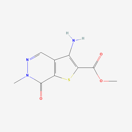 - Synonyms:1799412-46-6;METHYL 3-AMINO-6-METHYL-7-OXO-6,7-DIHYDROTHIENO[2,3-D]PYRIDAZINE-2-CARBOXYLATE;methyl 3-amino-6-methyl-7-oxothieno[2,3-d]pyridazine-2-carboxylate;DTXSID801120207;METHYL3-AMINO-6-METHYL-7-OXO-6,7-DIHYDROTHIENO[2,3-D]PYRIDAZINE-2-CARBOXYLATE;Thieno[2,3-d]pyridazine-2-carboxylic acid, 3-amino-6,7-dihydro-6-methyl-7-oxo-, methyl ester
