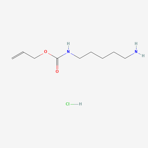 - Synonyms:N-Alloc-1,5-pentanediamine hydrochloride;1049721-59-6;207676-44-6;prop-2-enyl N-(5-aminopentyl)carbamate;hydrochloride;(5-Aminopentyl)-carbamic acid allyl ester hydrochloride;Allyl 5-aminopentylcarbamate;AKOS037654941;MS-21654;A1-07010;J-001304;(5-Amino-pentyl)-carbamic acid allyl ester;N-Alloc-1,5-pentanediamine hydrochloride, >=98.0% (AT);N-Alloc-1,5-diaminopentane hydrochloride, Allyl N-(5-aminopentyl)carbamate hydrochloride