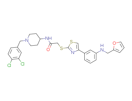 - Synonyms:N-[1-(3,4-dichlorobenzyl)piperidin-4-yl]-{4-[3-(furan-2-ylmethylamino)phenyl]thiazol-2-ylthio}acetamide