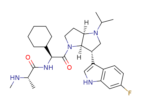 - 1218929-93-1/N-{1-cyclohexyl-2-[6-(6-fluoro-1H-indol-3-yl)-4-isopropyl-hexahydro-pyrrolo[3,2-b]pyrrol-1-yl]-2-oxo-ethyl}-2-methylamino-propionamide