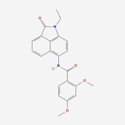 - Synonyms:313261-57-3;N-{2-ethyl-3-oxo-2-azatricyclo[6.3.1.0^{4,12}]dodeca-1(12),4,6,8,10-pentaen-9-yl}-2,4-dimethoxybenzamide;Oprea1_588867;DTXSID301155300;AKOS003628899;N-(1-ethyl-2-oxo-1,2-dihydrobenzo[cd]indol-6-yl)-2,4-dimethoxybenzamide;EU-0000581;SR-01000392475;SR-01000392475-1;F0125-1246;N-(1-Ethyl-1,2-dihydro-2-oxobenz[cd]indol-6-yl)-2,4-dimethoxybenzamide