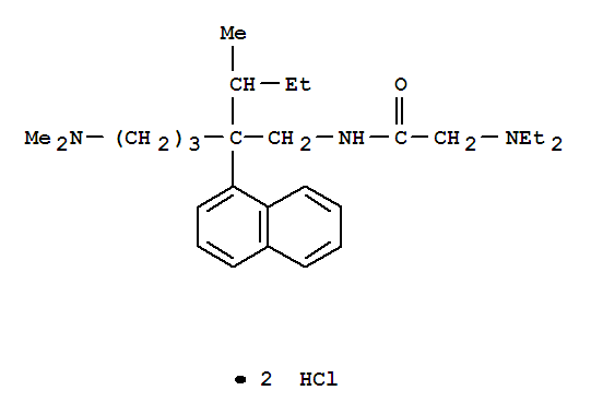 - Synonyms:Acetamide,N-[2-sec-butyl-5-(dimethylamino)-2-(1-naphthyl)pentyl]-2-(diethylamino)-,dihydrochloride (8CI); NSC 180647