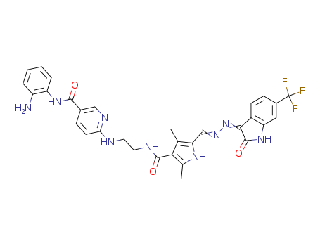 - Synonyms:N-(2-aminophenyl)-6-(2-(2-(((6-trifluoromethyl-2-oxoindolin-3-ylidene)-hydrazono)methyl)-3,5-dimethyl-1H-pyrrole-4-carboxamido)ethylamino)nicotinamide