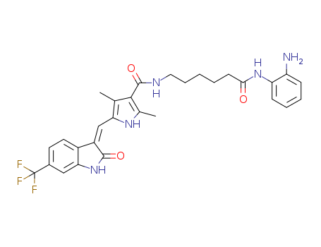 - Synonyms:N-(2-aminophenyl)-6-(5-(6-trifluoromethyl-2-oxo-1,2-dihydroindol-(3Z)-ylidenemethyl)-2,4-dimethyl-1H-pyrrole-3-carbonyl)aminohexanamide