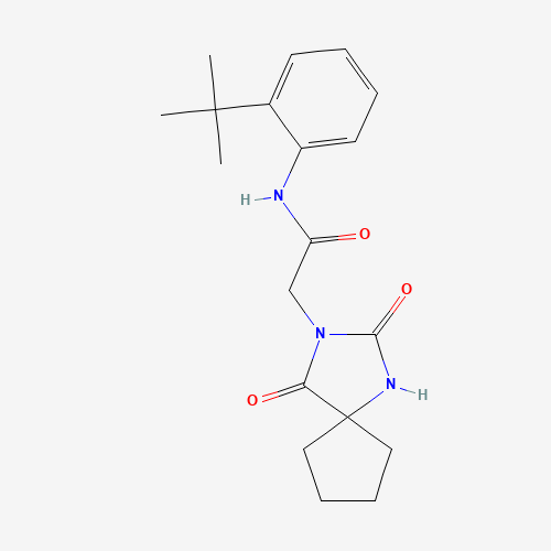 - Name: N-(2-tert-butylphenyl)-2-(2,4-dioxo-1,3-diazaspiro[4.4]nonan-3-yl)acetamide