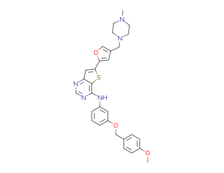 - Name: N-(3-(4-methoxybenzyloxy)phenyl)-6-(4-((4-methylpiperazin-1-yl)methyl)furan-2-yl)thieno[3,2-d]pyrimidin-4-amine
