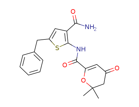 N-[3-carbamoyl-5-benzyl-thien-2-yl]3,4-dihydro-2,2-dimethyl-4-oxo-2h-pyran-6-carboxamide(383380-82-3)