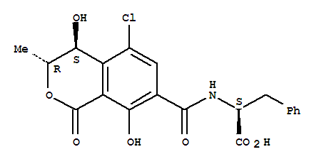 - 82598-16-1/N-{[(3R,4S)-5-chloro-4,8-dihydroxy-3-methyl-1-oxo-3,4-dihydro-1H-isochromen-7-yl]carbonyl}-L-phenylalanine