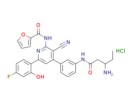 N-[4-{3-[(3-aminopentanoyl)amino]phenyl}-3-cyano-6-(4-fluoro-2-hydroxyphenyl)pyridin-2-yl]furan-2-carboxamide hydrochloride(925929-06-2)