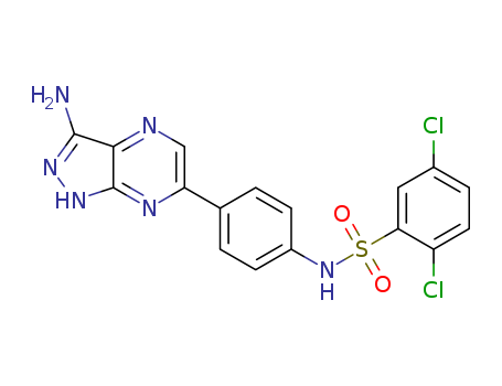 - Synonyms:N-[4-(3-amino-1H-pyrazolo[3,4-b]pyrazin-6-yl)phenyl]-2,5-dichloro-benzenesulfonamide