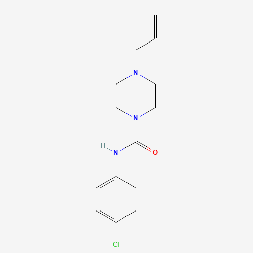 - Synonyms:N-(4-chlorophenyl)-4-(prop-2-en-1-yl)piperazine-1-carboxamide;932875-87-1;DTXSID601186398;STK482486;AKOS003398623;MCULE-3532405348;4-allyl-N-(4-chlorophenyl)-1-piperazinecarboxamide;N-(4-chlorophenyl)-4-prop-2-enylpiperazine-1-carboxamide;N-(4-Chlorophenyl)-4-(2-propen-1-yl)-1-piperazinecarboxamide