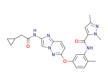 - Synonyms:N-[5-({2-[(cyclopropylacetyl)amino]imidazo[1,2-b]pyridazin-6-yl}oxy)-2-methylphenyl]-1,3-dimethyl-1H-pyrazole-5-carboxamide