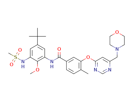 - Synonyms:N-(5-tert-butyl-3-methanesulphonylamino-2-methoxy-phenyl)-4-methyl-3-(6-morpholin-4-ylmethyl-pyrimidin-4-yloxy)-benzamide