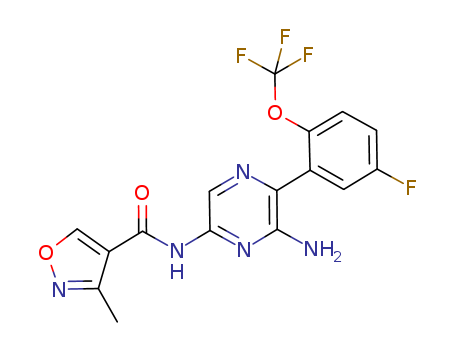 - Synonyms:N-{6-amino-5-[5-fluoro-2-(trifluoromethoxy)phenyl]pyrazin-2-yl}-3-methylisoxazole-4-carboxamide