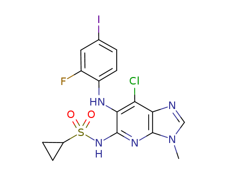 - Synonyms:N-(7-chloro-6-(2-fluoro-4-iodophenylamino)-3-methyl-3a,7a-dihydro-3H-imidazo[4,5-b]pyridin-5-yl)cyclopropanesulfonamide