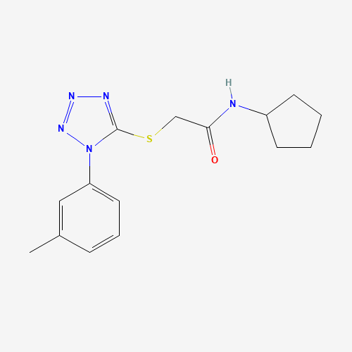 - Name: N-cyclopentyl-2-[1-(3-methylphenyl)tetrazol-5-yl]sulfanylacetamide