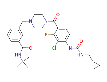 - Synonyms:N-tert-butyl-3-((4-(3-chloro-4-(3-(cyclopropylmethyl)ureido)-2-fluorobenzoyl)piperazin-1-yl)methyl)benzamide