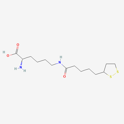 - Synonyms:N(6)-lipoyl-L-lysine;N(6)-6(R,S)-lipoyl-L-lysine;1676-89-7;CHEBI:21887;N(6)-[5-(1,2-dithiolan-3-yl)pentanoyl]-L-lysine;(2S)-2-amino-6-[5-(dithiolan-3-yl)pentanoylamino]hexanoic acid;N6-lipoyllysine;N6-lipoyl-L-lysine;Epitope ID:150926;N6-(DL-alpha-Lipoyl)-L-lysine;COTIXRRJLCSLLS-KIYNQFGBSA-N;DTXSID401312058;n6-(5-(1,2-dithiolan-3-yl)pentanoyl)-l-lysine;N(6)-(5-(1,2-Dithiolan-3-yl)valeryl)-l-lysine;Q27109416;(2S,6'R)-2-amino-6-(6,8-dithiooctanamido)hexanoic acid;2-amino-6-(5-[1,2-dithiolan-3-yl]-1-oxopentyl)hexanoic acid;(2S)-6-(5-(1,2-Dithiolan-3-yl)pentanamido)-2-aminohexanoic acid;(2S)-6-(5-(1,2-Dithiolan-3-yl)pentanamido)-2-aminohexanoicacid;(S,R)-2-amino-6-[5-(1,2-dithiolan-3-yl)pentanamido]hexanoic acid
