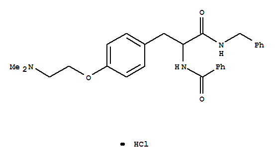 - Synonyms:Benzenepropanamide,a-(benzoylamino)-4-[2-(dimethylamino)ethoxy]-N-(phenylmethyl)-,monohydrochloride (9CI); Benzenepropanamide, a-(benzoylamino)-4-[2-(dimethylamino)ethoxy]-N-(phenylmethyl)-,monohydrochloride, (?à)-