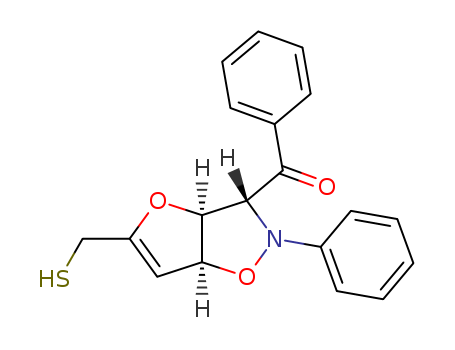 - Synonyms:Methanone,phenyl[2,3,3a,6a-tetrahydro-5-(mercaptomethyl)-2-phenylfuro[2,3-d]isoxazol-3-yl]-,(3a,3aa,6aa)- (9CI); Furo[2,3-d]isoxazole, methanone deriv.